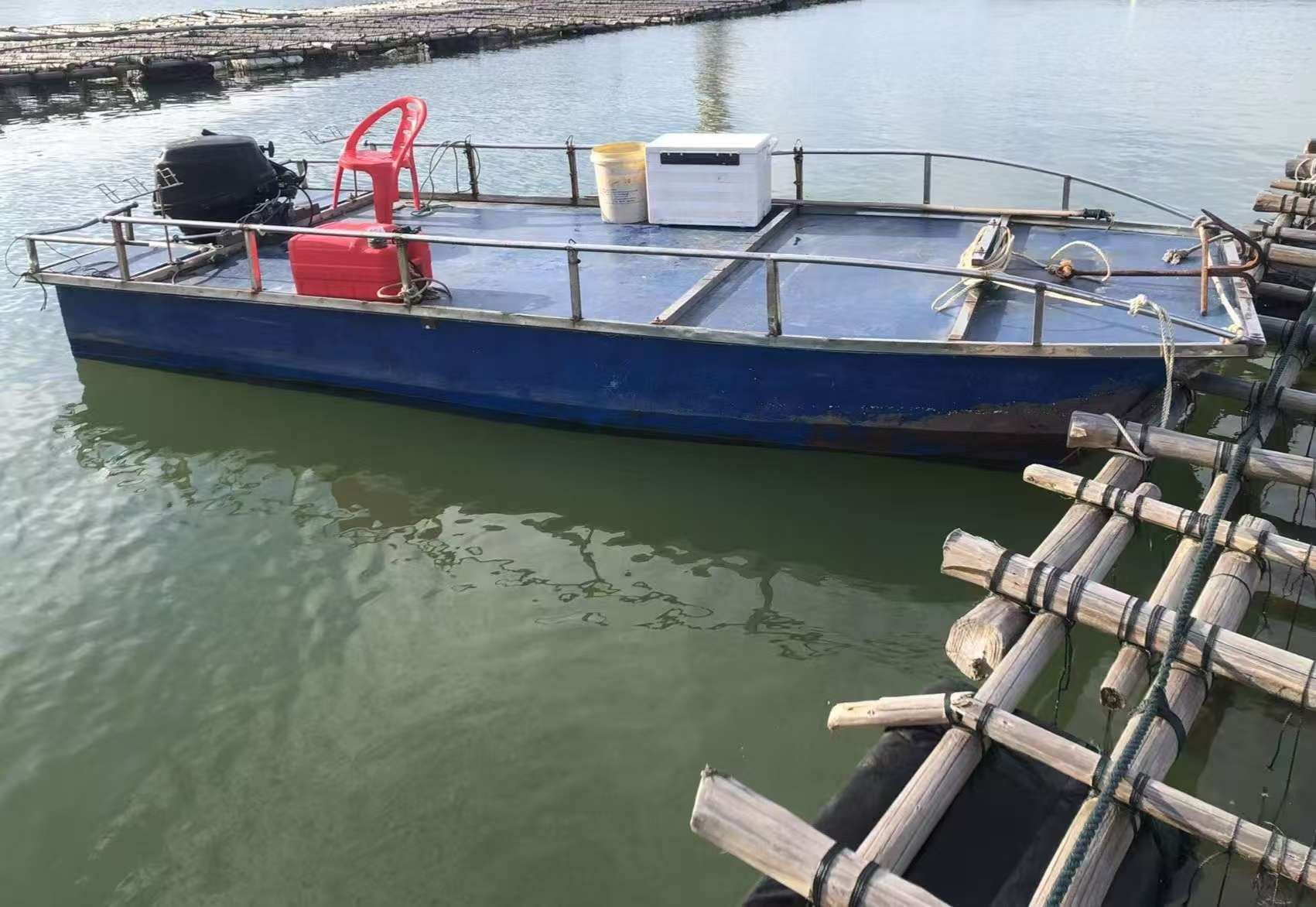 菠萝桥玻璃钢双体船配百盛四冲20,整套出
