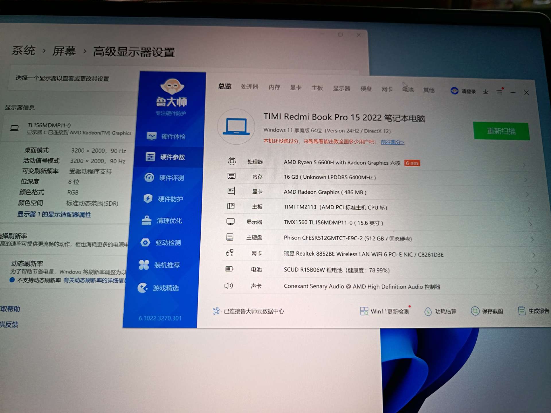 小米笔记本电脑pro 2022 R5-6600h/16g ddr5/512G/15.6 3.2k 90刷新率 oled 屏幕