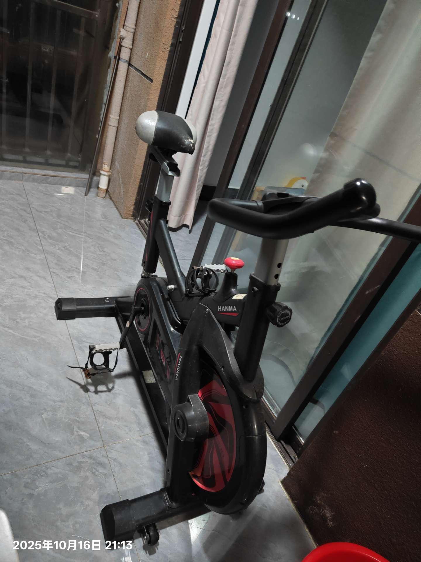 汗马动感单车,黑红配色,非常好看 ,功能正常,适合家庭室内健身减肥。
