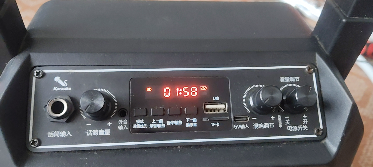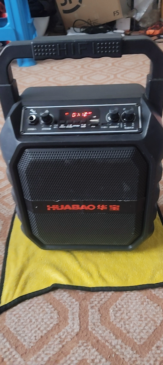华宝F100蓝牙音箱,支持蓝牙、U盘、TF卡、AUX、话筒输入,带显示屏,功能齐全。外观成色都在图里啦,有正常使用痕迹,功能正常,音质清晰,低音不错。适合广场舞、家用K歌、户外活动。二手商品售出不退不换,需要的朋友私聊。