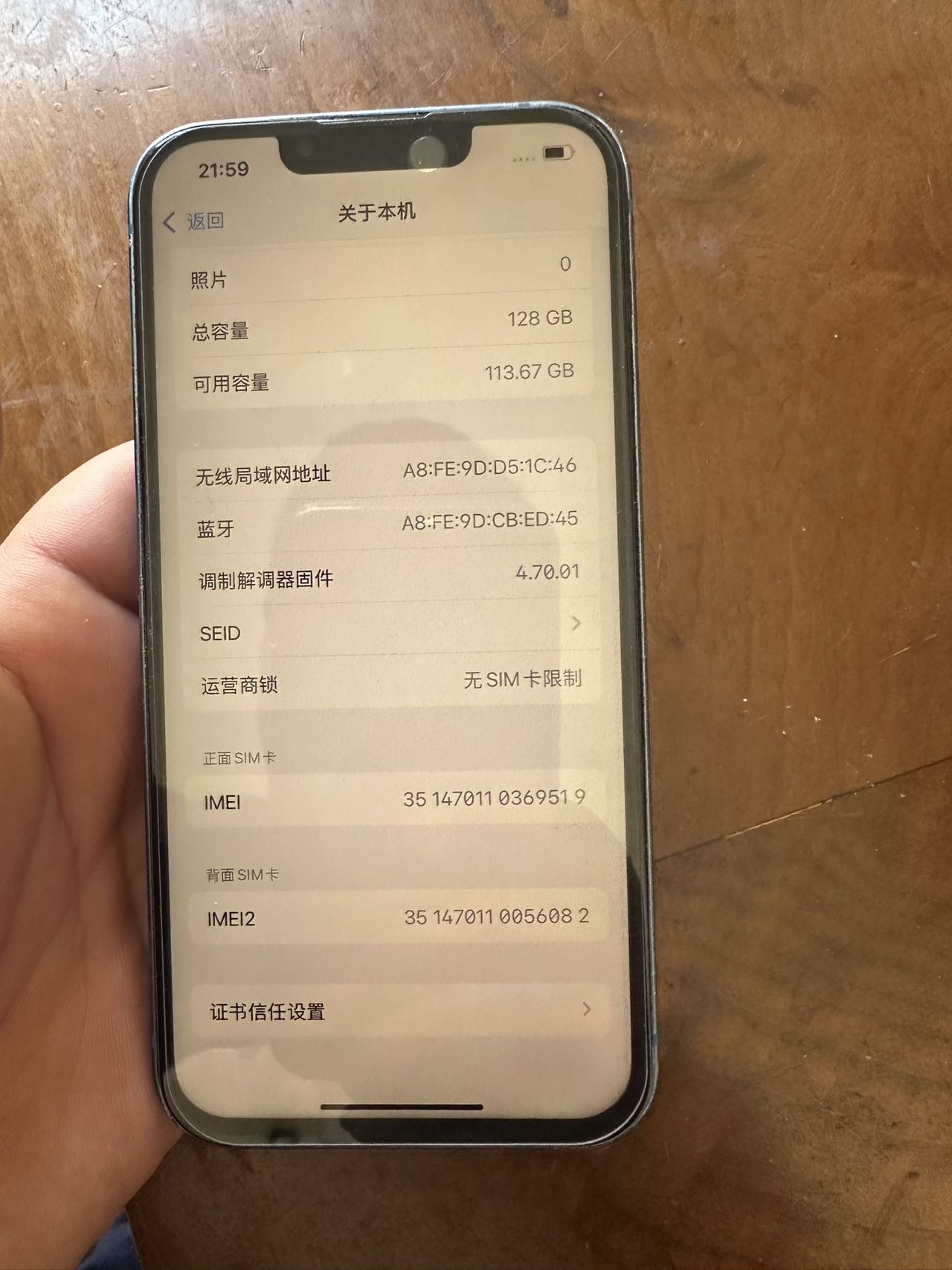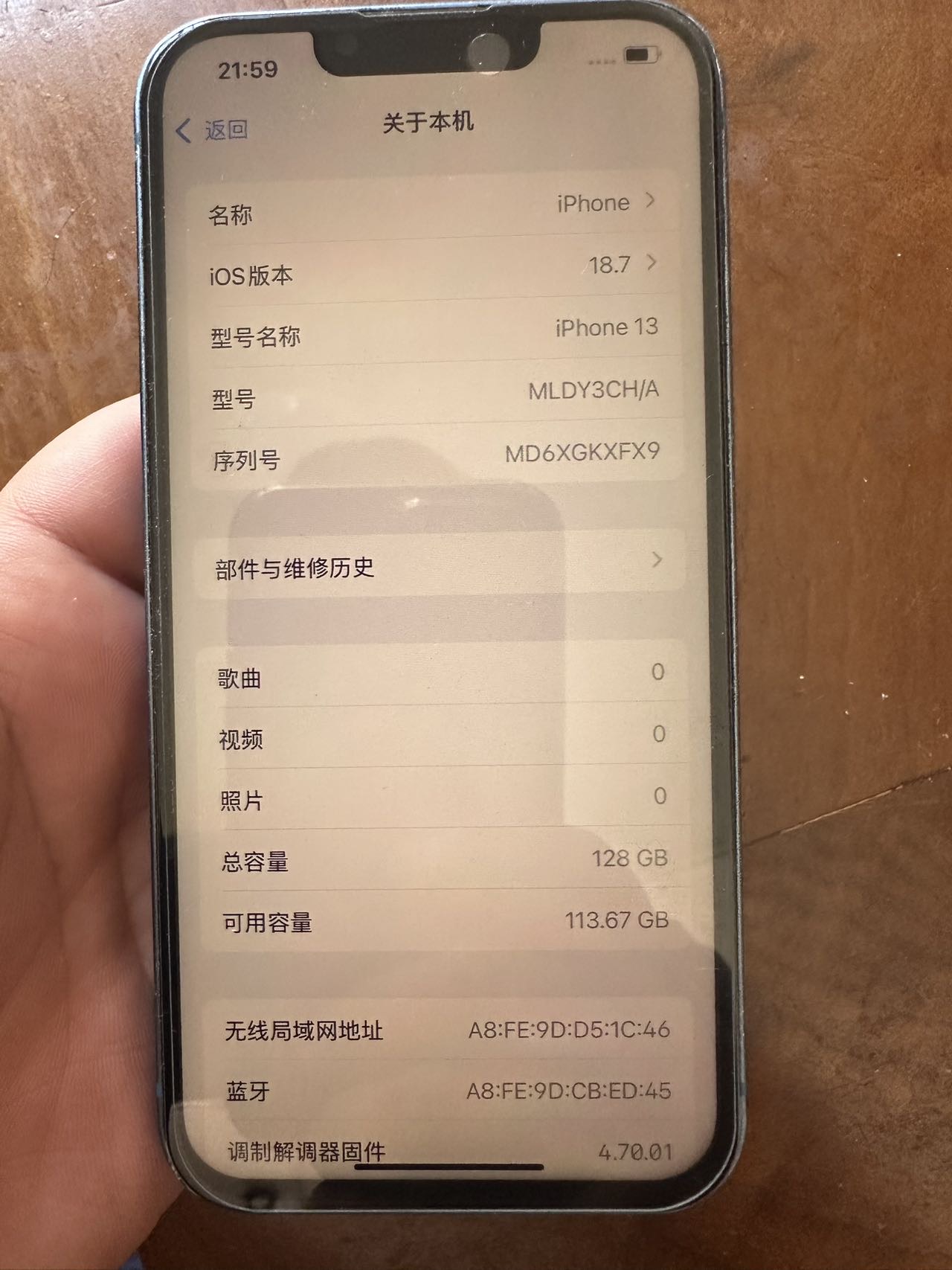 苹果iPhone 13 128G 蓝色 国行,换过屏幕(国产屏),电池,