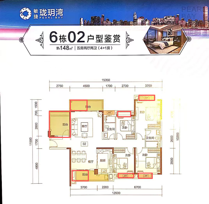 148㎡+送20㎡,五房双阳台
