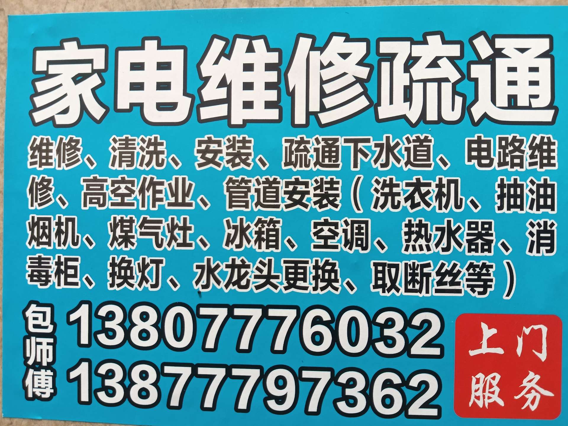专业疏通下水道,改管疏通,高空作业,水电维修,安装,换水龙头,取断丝,换灯具,