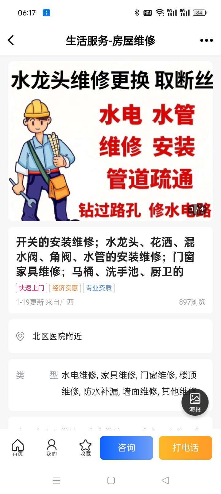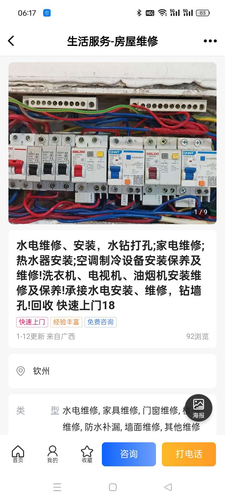 水电维修、安装,水钻打孔;家电维修;热水器安装;空调制冷设备安装保养及维修!洗衣机、电视机、油烟机安装维修及保养!承接水电安装、维修,钻墙孔!回收3-25 1043浏览疏通打孔