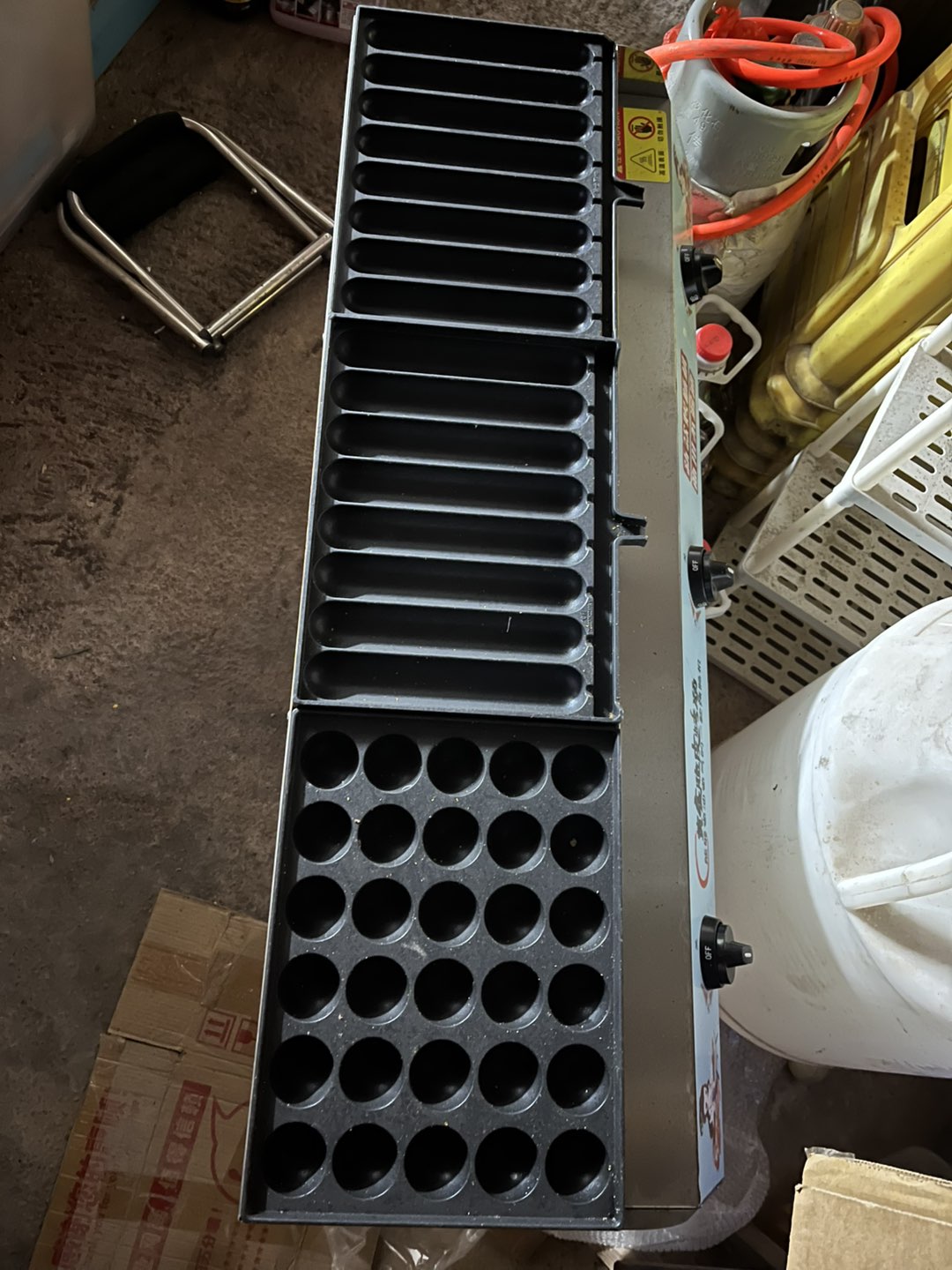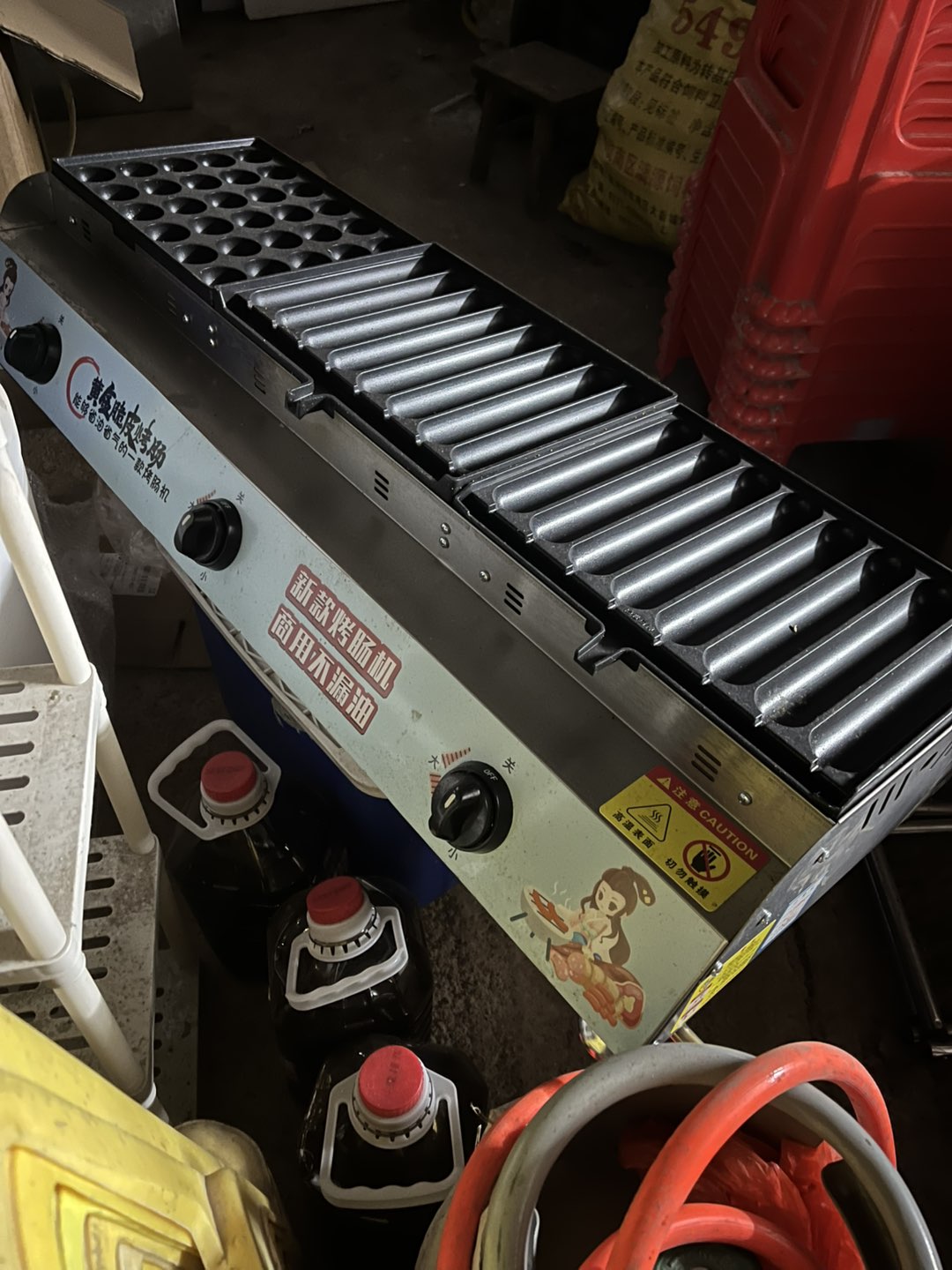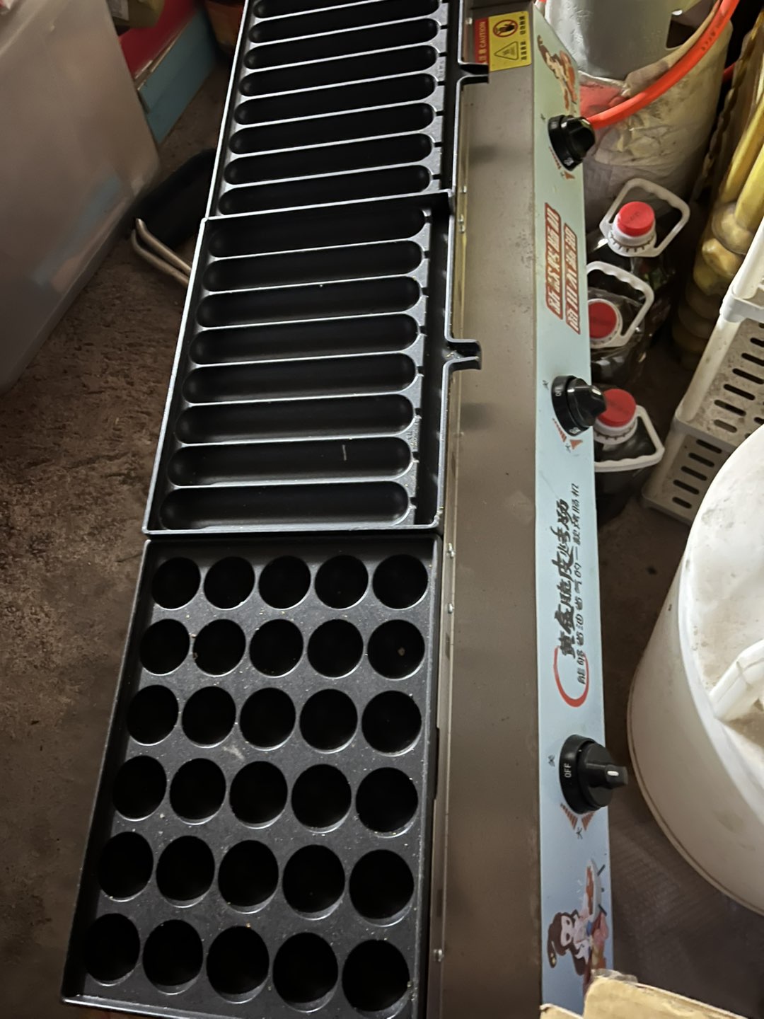 出燃气烤肠机 章鱼小丸子灶,液化气加热,三灶款,24管设计,烤盘多,效率高,不漏油,适合夜市、小吃店、摆摊用。机器成色还可以,功能正常,配件齐全,具体看图。