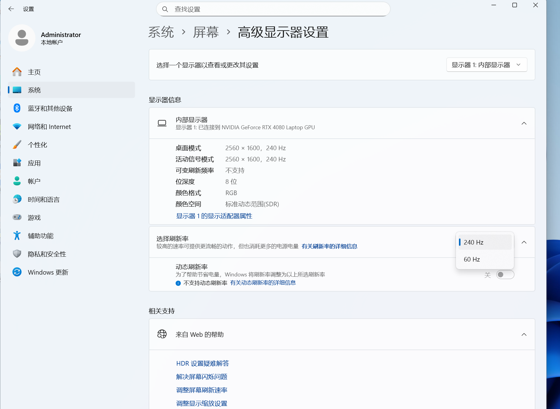屏幕:16寸 2.5K240Hz