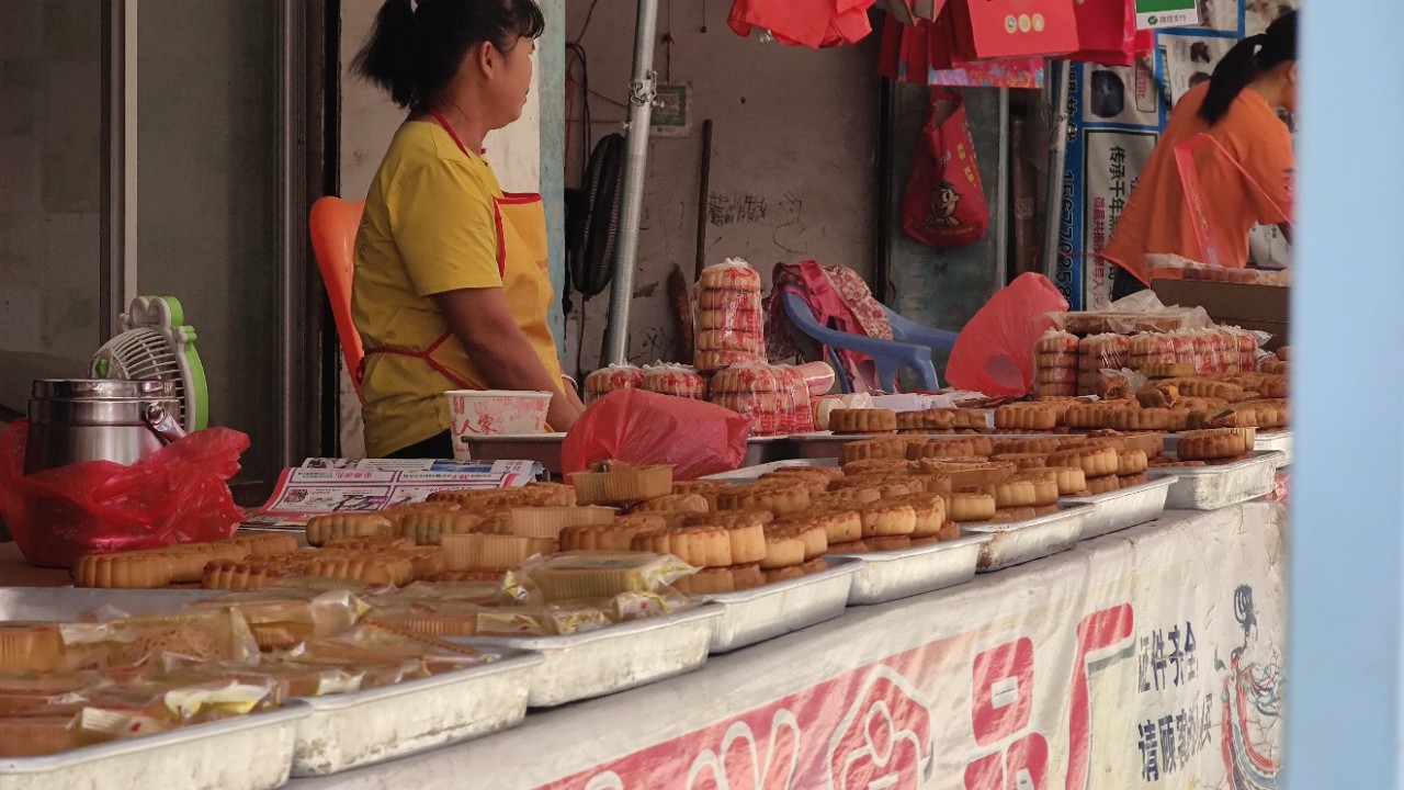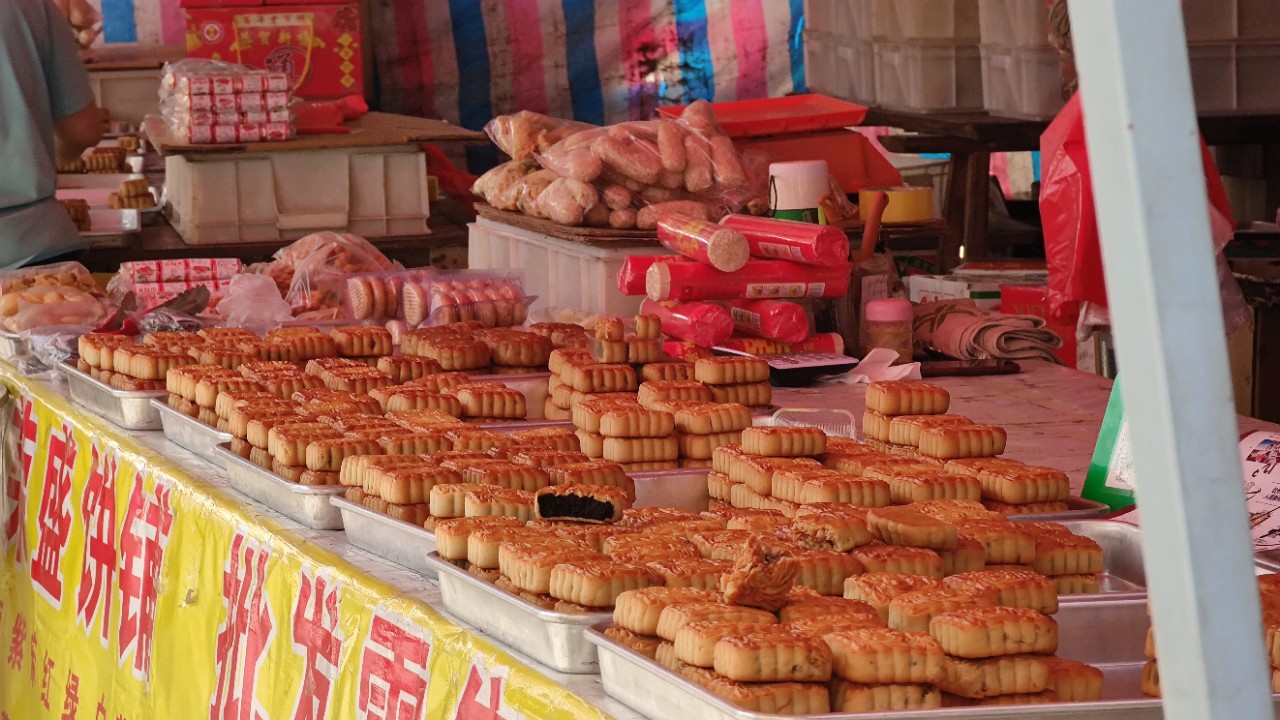 这里也要说说小董月饼,毕竟小董月饼是我的儿时回忆,中秋节快到了,既然来到小董,不买几只回去怎么行呢?黄澄澄香喷喷的月饼在摊上引人注目,老街中远远地就能闻到它的油香味。卖月饼的阿姨手法娴熟地用油纸包好月饼,她说自家的月饼卖了近六十年了,最好卖的就是麻蓉和叉烧,现在也与时俱进增加了不少新品。这油纸包的月饼小时候父母都是放在米缸里的,饿了就去揭缸盖用手翻米找月饼吃,哈哈哈。