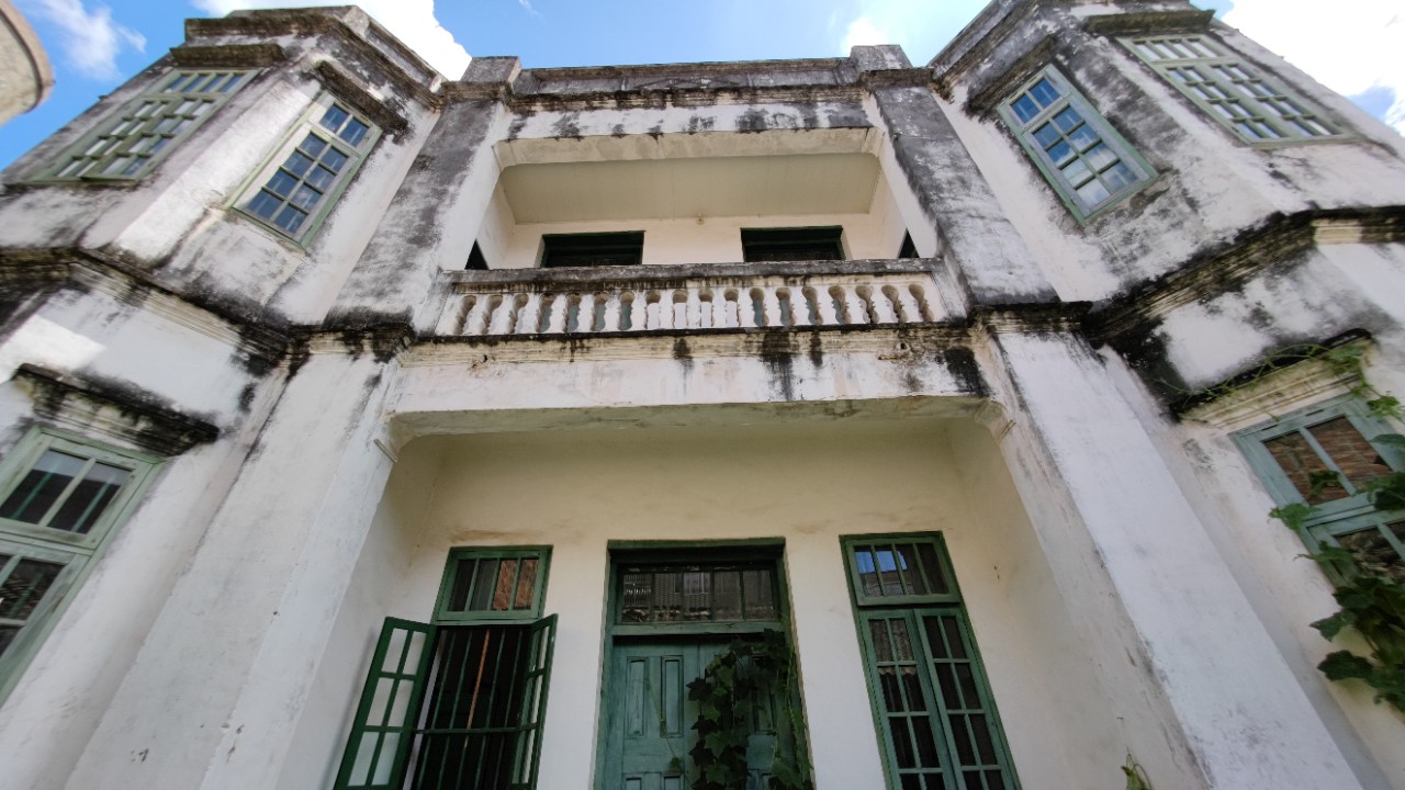 位于老街青石板旁边的洋楼,典型的西洋风,可见当年房主的富贵身份,岁月无情流逝,当年富贵的容颜终抵不过风雨侵蚀,洋楼也老了,不过楼里还有人在住,空调也装上,再住一百年还行吧。