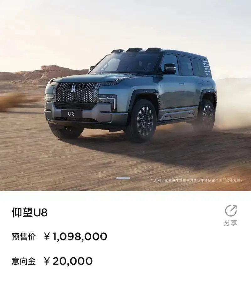 仰望U8预售价109.8万