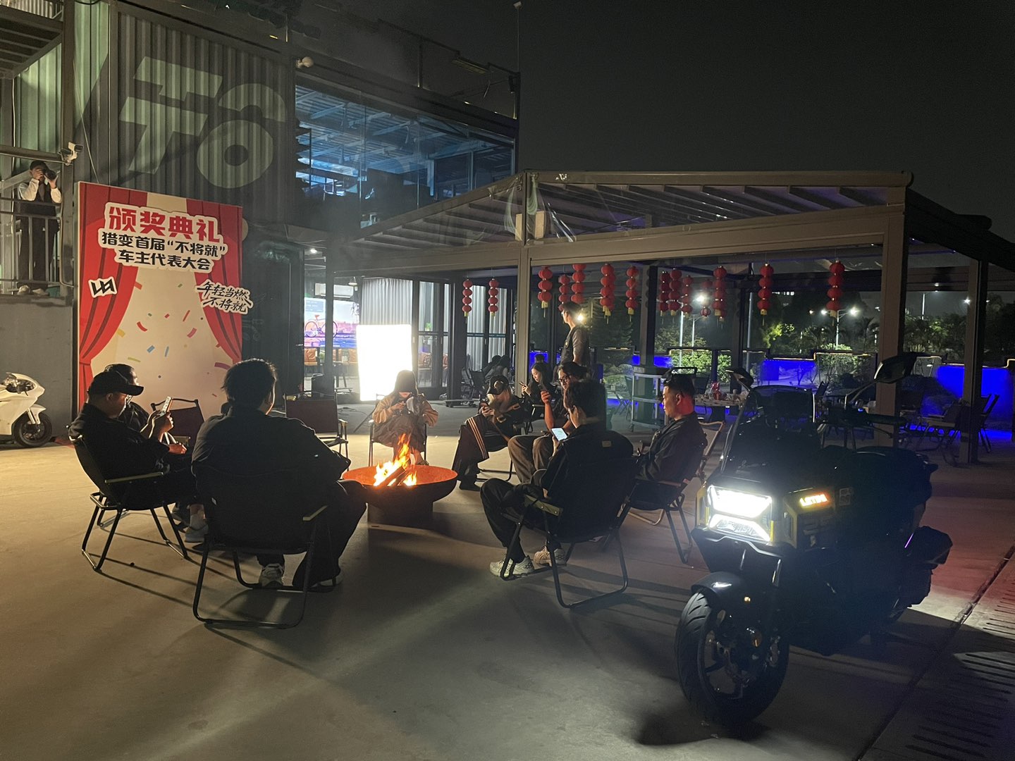 吃饱喝足就到了激动人心的颁奖环节,在抽奖环节,我因抢到红包金额最少而获得了一个头盔蓝牙耳机,真是“好嘢沉归底”呀!所有议程结束后,我们围在火炉旁,聊摩托车、聊摩旅,共同探讨猎变摩托给我们的带来的生活便利和摩旅乐趣。